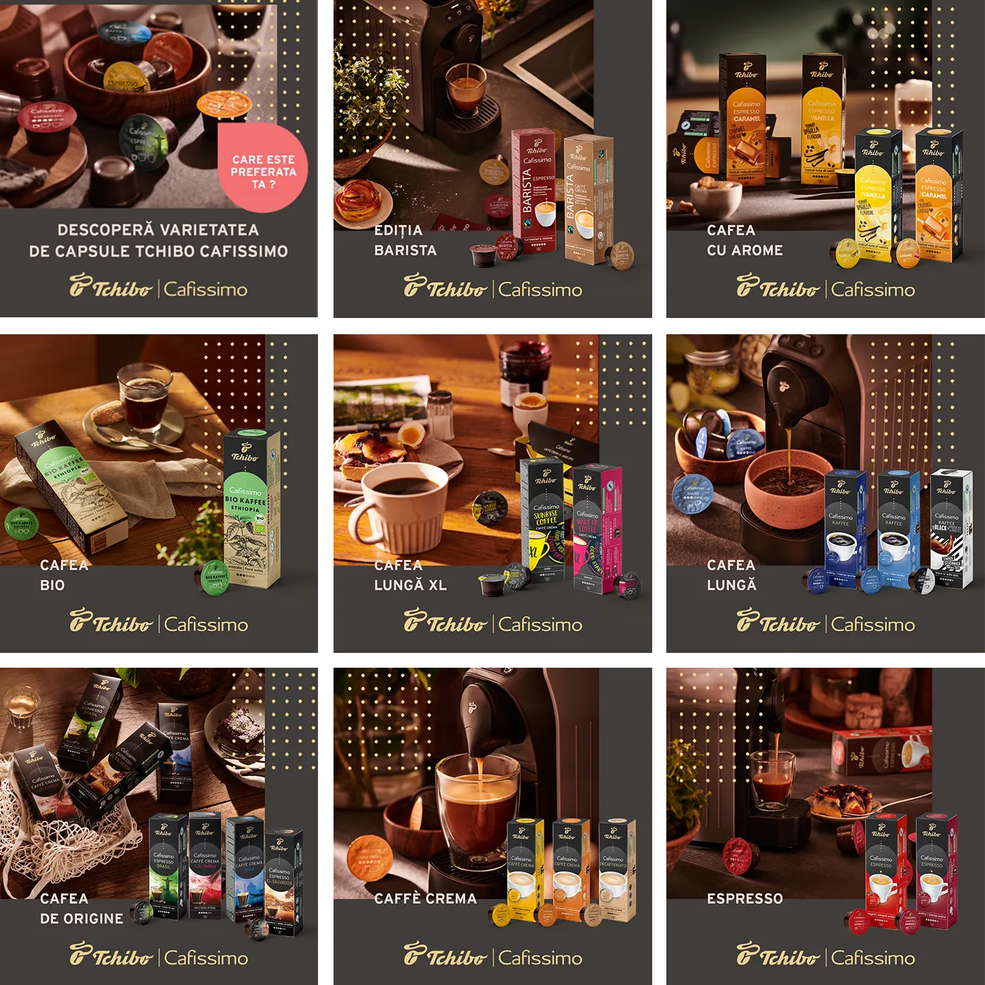 The Digital Campaign is designed to captivate coffee enthusiasts by showcasing the diverse range of Tchibo coffee capsules. Aimed at coffee lovers, the campaign highlights the rich flavors and unique blends that make every Tchibo coffee moment special. With high-quality visuals and engaging content, it emphasises the wide variety of flavours, from bold and intense to smooth and mellow, appealing to different taste preferences. The friendly and informative tone underscores Tchibo’s commitment to quality and sustainability, while interactive elements add authenticity and encourage exploration. Special offers and social media engagement foster a sense of community, inviting coffee lovers to discover their perfect Tchibo blend.